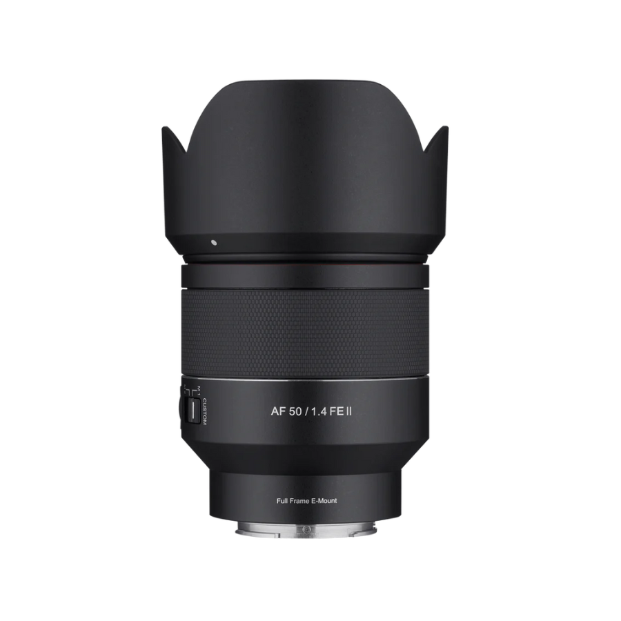 The Samyang AF 50mm F1.4 FE II for Sony E is the smallest and lightest large-aperture standard 50mm lens, measuring just 88.9mm (3.5in) in length and weighing 420g (14.8oz), making it an ideal choice for those looking for portability without compromising optical performance. It features a 45.7˚ angle of view for full-frame sensors and 31.1˚ for APS-C sensors, delivering exceptional sharpness and contrast across the frame. The lens’s optical design incorporates 11 elements in 8 groups, including 2 aspherical (ASP), 3 high-refractive (HR), and 1 extra-low dispersion (ED) element for optimal resolution and minimized chromatic aberrations.